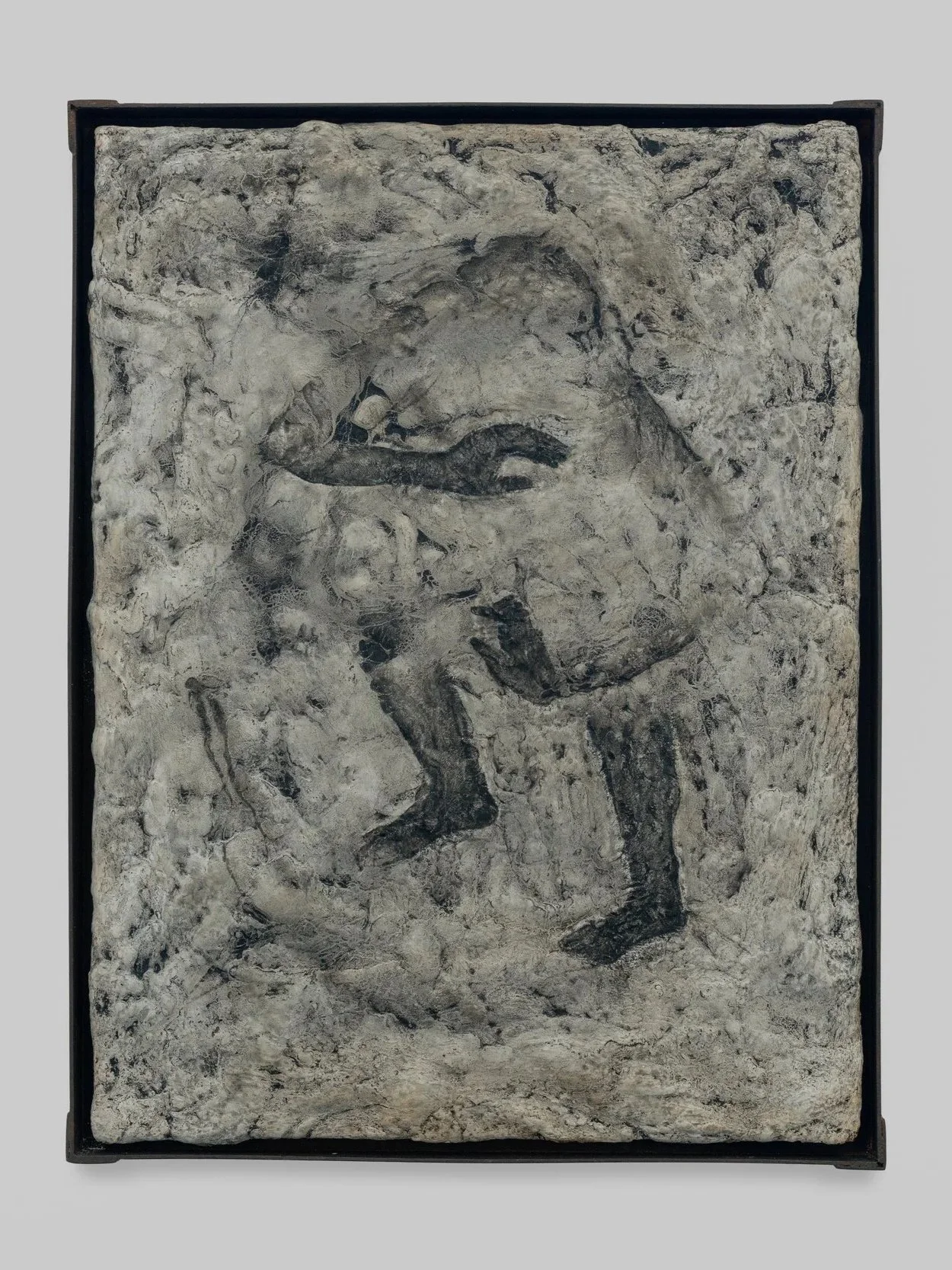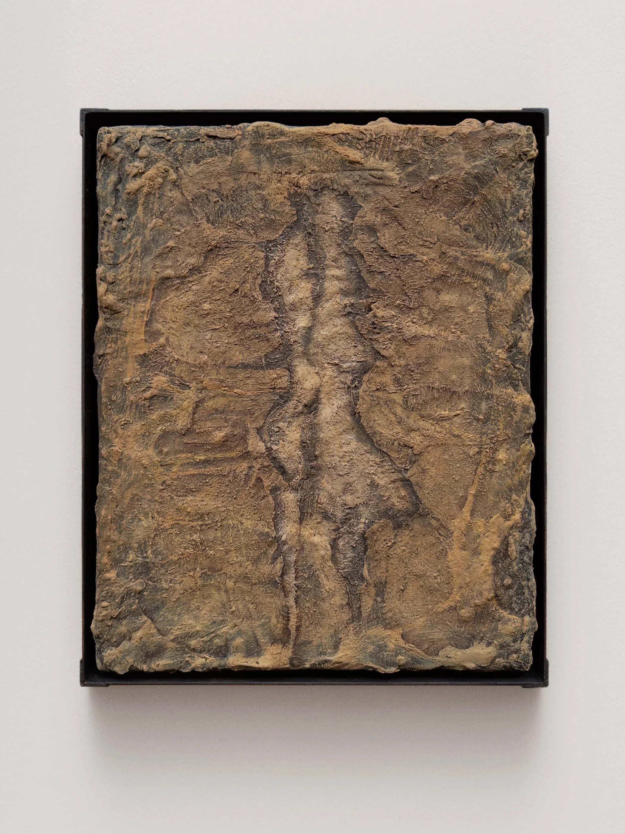 Australian-born Hunter Amos is an artist whose idiosyncrasies include not only an inspired choice of subject, but a deft manipulation of material. His oil paintings defy perception and appear as though products of natural erosion: figures and other forms emerge from within, greeting the viewer from the ‘other side’. Herein lies the mystery surrounding Amos’ painting: each crevice and crease about its surface is deliberate and yet the resulting impression is anything but. Using his amassed knowledge of natural formations, weathering, and other marks, Amos has begun to understand things via the impositions of their environment. Consistently debating the value of human intervention in the natural world, questioning whether humans are part of or apart from nature, he is developing a nuanced practice concerned at its core with materiality in painting and, more broadly, in the world.