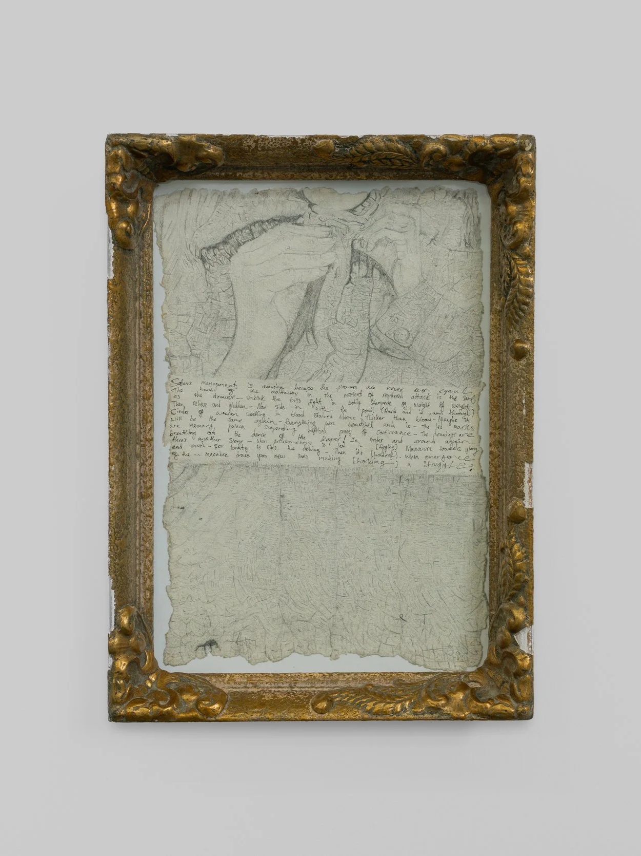Holding, 2023, pencil on paper, antique frame, 34 × 25 cm